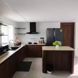 🚨I personally like this place. Everything looks new because it has only been open for a short time. The owner of the accommodation is also very friendly and kind. He drove from Bangkok to welcome us in Pattaya and then drove back. That's not all. Washing kitchen equipment and eating utensils, which is one of the pain points for those who want to set up a barbecue and buy food to eat at the accommodation, doesn't require doing it yourself. The staff will come and do it in the morning, which is included in the accommodation fee. I must say it's very worthwhile. It's true to the phrase "making society" 😂