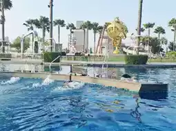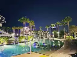 The hotel features a 6,000-square-meter water park (including slides and splash zones) and an infinity pool, all free to use, ensuring fun for both kids and adults.