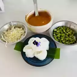 • Many types of Khanom Jeen Curry — There are 7 types to choose from, such as crab curry, coconut milk curry, southern curry, peanut chili paste, etc. Served in a hot pot with hot Khanom Jeen