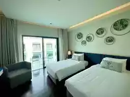 Kram Pattaya - Kram Pattaya, a hotel decorated in white and blue tones, like being in Santorini. The hotel's design is simple but classic. You can take pictures from any angle and they'll be beautiful.