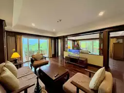 The room is large and spacious. There is a corner for sitting and watching TV / listening to music.