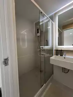 The water park is not very big but clean. There are slides and foam for rent at 100 baht per time. The rooms are clean and have complete equipment: plates, bowls, spoons and forks (2 pairs). There is no dishwashing liquid, so you may have to bring your own if you want to use it many times. The rooms are on the road, so there may be noise from modified motorcycles or ambulances. There is a small kids club for children to play. You can go up to the 22nd floor observation deck to see the view. For breakfast, the buffet line has a lot of food and it's delicious.