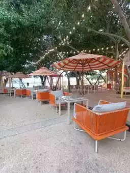 A cafe on a private beach, Z Beach, The Zign Hotel, decorated in orange tones