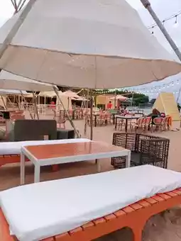 Z Beach Cafe is a cafe on the beach with many tables to accommodate customers.