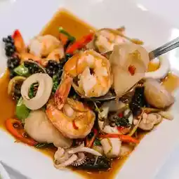 The sauce is just the right amount of sweet and sour, tenderloin steak, soft, fragrant, and melts in your mouth. There is also salmon salad, large pieces of salmon with crispy vegetables, perfectly seasoned salad dressing. In addition, there are many other Thai dishes, such as Tom Kha Gai, rich and flavorful, Pad Cha Talay, spicy and hot, and Khao Khluk Kapi, fragrant and delicious.