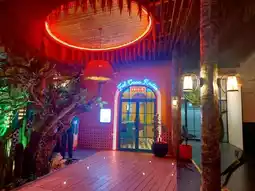 🍹🍹A cafe in Pattaya that's considered one of the most photogenic places. This beach cafe boasts a swimming pool in the center, decorated in a Balinese style with vibrant orange tones for a truly summery feel. 🍹🍹At night, it's adorned with colorful lights, making every corner a beautiful photo opportunity. This time, we went at night, so we'll have to try a daytime spot for a different kind of photo opportunity.
