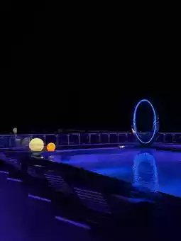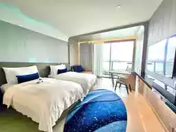 The highlight is definitely the ultra-sci-fi space capsule design! The lobby resembles a starship command center, and the rooms are packed with futuristic vibes—blue-purple lighting + sleek, streamlined designs make every photo look like a sci-fi blockbuster. The rooftop infinity pool is the ultimate showstopper, offering 360-degree panoramic views of Pattaya by day and transforming into a starlit pool at night, with lights blending beautifully against the city skyline.