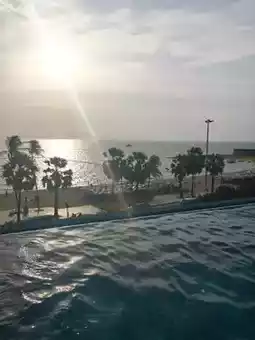 The hotel facilities are top-notch. There is a pool with slides, though the kids mentioned the water wasn't very clean. There's also an infinity pool with a sea view, which is incredibly relaxing. The hotel staff occasionally organizes children's activities by the pool, creating interactive fun for the little ones. For those who prefer to stay dry, there's an indoor kids' play area where children can burn off energy. If parents get bored waiting for their kids, the hotel even offers foot massage services, though I found them too expensive to try.