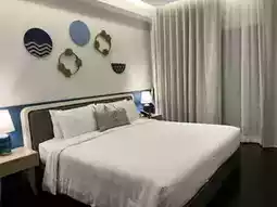 The room was beautiful, spacious, and clean, decorated in shades of indigo and white. It was absolutely amazing! If you're looking for a beachfront accommodation for a long weekend, I highly recommend this place.