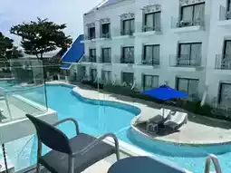 This beachfront hotel has a beautiful swimming pool. I've been here many times because I love it. The large pool is beautifully designed. From your room, you can see the pool view, which is a highlight of the place. Walking to the back is the sea. It's absolutely beautiful, everyone! The view is stunning. However, I recommend going in the evening because the water is beautiful. Low tide in the morning makes for less beautiful photos. 🏝️