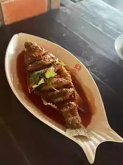 We ordered spicy and sour fish, crab curry, and Thai fried shrimp cakes. The spicy and sour fish, perhaps due to a misunderstanding, was crispy fried fish drizzled with a ketchup-flavored sauce. The fish itself was fresh and delicious, but the ketchup didn't quite add up. The crab curry was the best dish. The Thai fried shrimp cakes, supposedly a signature dish, were surprisingly unpalatable at first bite. The shrimp cakes are made by wrapping many small shrimp together and frying them. They're very crispy and incredibly greasy, with a greasy flavor that permeates your mouth.