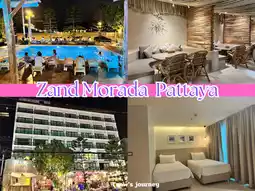 And the other hotel is Zand Morada Pattaya in Na Jomtien, Pattaya. This hotel is very reasonably priced, with a great atmosphere. Jomtien Beach is just a few steps away. There's a restaurant and cafe downstairs. If you want to chill downstairs, the vibe is amazing. A one-stop destination for your Pattaya trip.