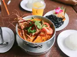 🍛Today, we tried the Tom Yum River Prawn soup, which was incredibly flavorful with large, juicy prawns. We also tried the squid stir-fried in black sauce, which was incredibly delicious. We also tried the crispy fried sea bass with fish sauce, which was deboned for you, served with a delicious mango salad.