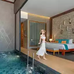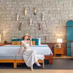 🛖 Each villa is meticulously designed with a "mine" concept, incorporating classic and contemporary touches. Each villa type features unique features, such as a private pool or jacuzzi, perfect for relaxing. The surroundings are tranquil and shady, perfect for couples, families, or groups of friends.