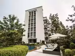 Manhattan Pattaya offers a beautifully lit ambiance and is conveniently located not far from the beach. The hotel features a swimming pool with a cascading waterfall, creating a relaxing vibe. The property is adorned with a green garden area contrasted by white tones, providing picturesque spots for photography. There is also a separate children's pool area with varying depth levels. Breakfast options are available and can be served directly to your room, ensuring maximum convenience. Highly recommended for a stay!