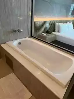 I stayed in Pattaya for three nights. On my second night, I switched hotels to attend a seminar/work outing. My work chose the Mandarin Eastville Pattaya as a venue for seminars and parties. The hotel is divided into two buildings: one with classically decorated rooms and the other with Zen-themed rooms. For this stay, I got the Zen-themed room. The room was large, about 40 square meters. The bathroom had a bathtub and shower area. The bedroom had a large TV and a sofa at the foot of the bed. The room had an outdoor balcony.