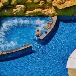 The pool features a Jacuzzi and an outdoor poolside bar. There's a fitness center on the 6th floor and a spa.