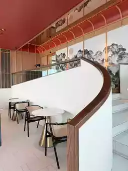 ✨ The cafe is located in a hotel, decorated in a minimalist, airy style with wood and earth tones, creating a warm, peaceful atmosphere, perfect for chilling out, relaxing, or doing some light work.