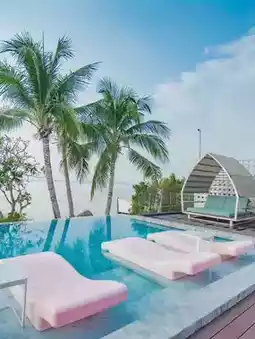 The bright blue pool is stunning. Kram Pattaya is another recommended place to stay because of its wonderful atmosphere and seaside location. The highlight is the swimming pool and a small beachfront bar where you can chill and watch the sunset in the evening. The rooms offer a pool view and are beautifully designed and luxuriously furnished with all the amenities you need. #Pattaya