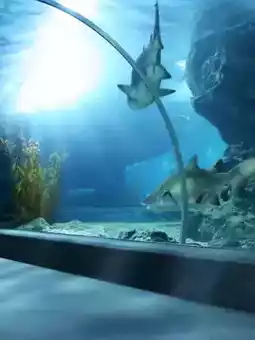 Walk through the underwater tunnel to see sharks, rays, and schools of colorful fish.