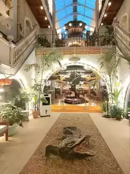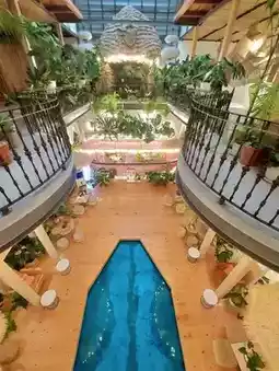 The stunning entrance is a tall hall decorated in a variety of styles, from fairytale to Balinese to beach club. The emerald green pool in the center is a perfect spot for photos. No matter where you walk, you won't be able to resist capturing a photo.