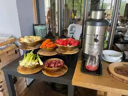 "Premium" highlights the luxurious interior design of the rooms and lobby, adorned with artistic paintings and handcrafted decorations. Guests can enjoy free access to a pool table and ping pong table. Breakfast includes unlimited wine and an A La Carte menu accessible via QR code for ordering. Before leaving, guests are treated to cookies to enjoy during their journey home!