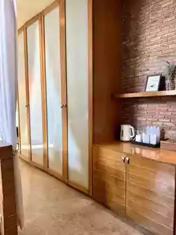 ✔️ The room is very spacious and arranged into zones. It's beautifully decorated. The bed is wide and soft.