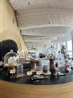 Let me introduce you to another interesting hotel in Pattaya—the café located on the 16th floor of the Hilton Hotel. The view is absolutely stunning, and the prices for drinks and pastries are very reasonable. Plus, everything tastes delicious! The staff provides excellent service, making it a perfect spot for relaxing and hanging out with friends. There are also plenty of photo-worthy corners to explore.