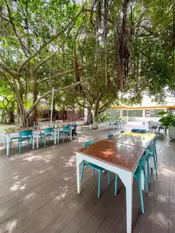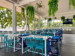 The restaurant offers a great atmosphere by the sea, with a pier extending into the ocean where you can take a stroll and snap some photos. If you visit in the evening, you can enjoy a beautiful sunset view.
