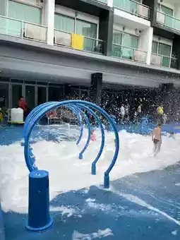 We stayed on a Saturday, and the crowd was just right. There was a foam party at 4 PM, which attracted all the kids to that area. If you're waiting to take photos of the pool when it's less crowded, this is the perfect time.