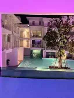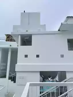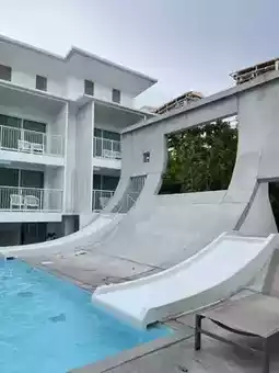 The poolside rooms are ideal for families with kids. The saltwater pool is not too deep, only 90 cm, making it just the right size for fun swimming. There are plenty of spots to enjoy. For photography enthusiasts, this place is highly recommended! The white hotel contrasts beautifully with the blue pool, making it incredibly photogenic. Even casual shots turn out stunning. Whether you're swimming or taking photos, this place is perfect.