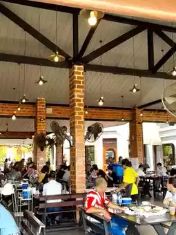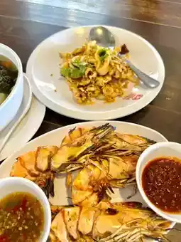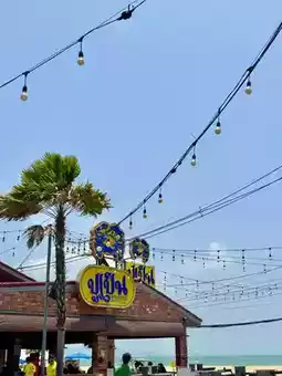📍 Located at Jomtien Beach, Pattaya, this restaurant boasts a spacious setting with both indoor seating under a roof and open-air seating to enjoy the sea breeze. There are approximately 40-50 seats available, and the place is often bustling with families and tour groups.