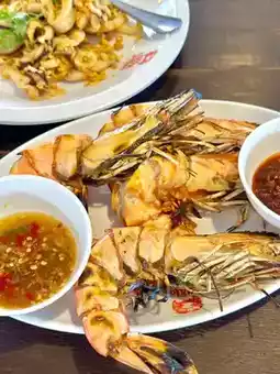 📍 Recommended dishes include grilled prawns, grilled squid, crab fried rice, stir-fried prawns with curry powder, and steamed crab claws.
