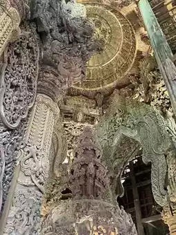 The Sanctuary of Truth is one of the most unique tourist attractions in Pattaya, Chonburi Province. It's not just an architectural wonder, it's also a center of profound and valuable Thai philosophy, religion, and art and culture. Every corner of the temple reflects the concept of the truth of life, the relationship between man and the universe, and the harmonious coexistence of religion and nature.