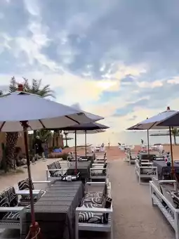 The moment you step into Morocco Beach Club, you'll feel as if you've been transported to an oasis in the desert. The brick-orange walls are decorated with geometric Arabic motifs, along with rattan furniture and tribal-patterned pillows, evoke a sense of relaxation and immersion. The beachfront area is perfectly designed, featuring sunbeds, chill-out sofas, and a seaside dining area. It's perfect for watching the sunset, listening to the gentle sound of the waves, and sipping on a cool drink. The striking design, which blends Moroccan architecture with a tropical touch, has made this a popular photo spot for both Thai and international tourists.