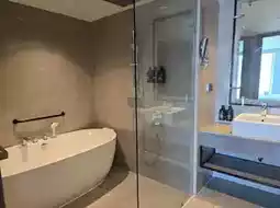 The rooms are spacious and come with a bathtub and city views. They are fully equipped with amenities, including natural daily-use products, a welcome fruit basket, and an air purifier, which is incredibly useful. Start your day refreshed with the hotel's signature drinks, such as traditional coffee, Thai iced tea, and Ovaltine, freshly prepared per order. The breakfast is of high quality.