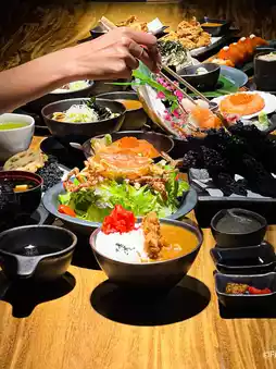 The restaurant uses fresh, high-quality ingredients imported directly from overseas. Dishes featuring dark meat, such as the Charcoal Tempura and Wagyu Katsu, are a hit, offering both flavor and melt-in-your-mouth texture.