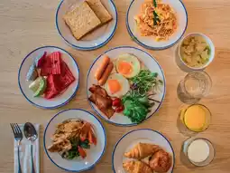 This small hotel offers everything you need. The luxurious lobby area offers a warm and inviting atmosphere, decorated in soothing tones of white and blue. The rooms are beautiful and offer a full range of amenities. There's also a rooftop fitness center for relaxing, and the rooftop swimming pool offers a fantastic view of the city. The breakfast buffet is delicious and varied. If you're visiting Pattaya and looking for a place with a great atmosphere, I highly recommend this. #Pattaya