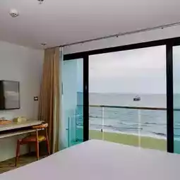 It's located right on the beach, with a balcony where you can step out and enjoy the sea breeze.