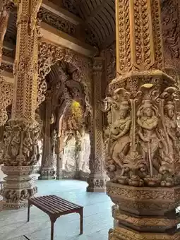 This is the world's largest wooden Buddhist structure, hand-carved without a single nail. It's truly a stunning sight!