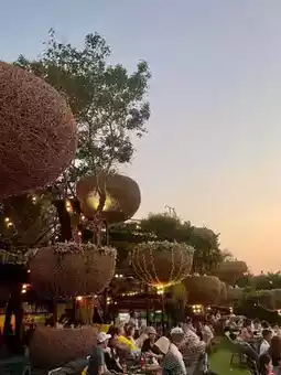 This unique elevated bird's nest dining area offers a unique experience! Book a seat outside for breathtaking sea views! In the evening, the resident singers will entertain you. Enjoy the sea breeze and music. This is truly a relaxing atmosphere.
