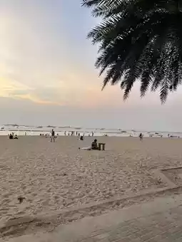 • Strolling along the beach, taking photos of the sea view and evening light 🌅.