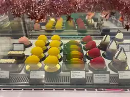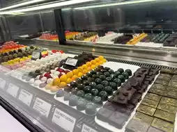 The highlight is the freshly made chocolates and desserts, including cakes, pralines, and chocolate ice cream.