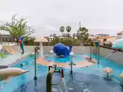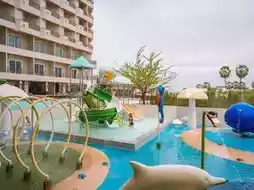 The hotel also offers a variety of other amenities, including an outdoor pool with a water park, a fitness center, a sauna, a chill-out bar, and a beautiful restaurant.