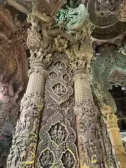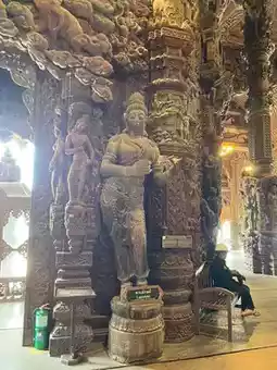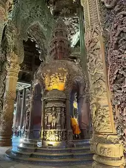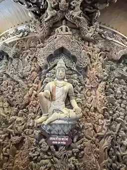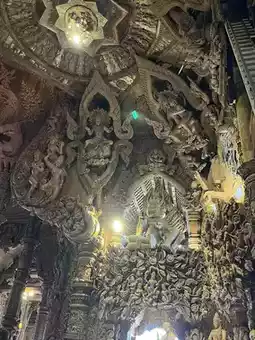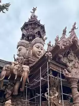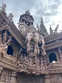 Rising majestically on the shores of Pattaya, the Sanctuary of Truth is not just a temple, but a masterpiece of traditional Thai craftsmanship. Built entirely out of wood without any metal nails, this awe-inspiring structure blends Buddhist and Hindu motifs, showcasing intricate carvings that tell stories of philosophy, spirituality, and the cycle of life.