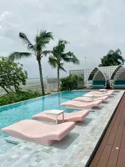 ✨ A stylish beachfront spot in Pattaya that blends modern comfort with a calm seaside vibe. The clean white-and-blue tones give off that perfect coastal charm.