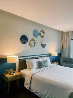 ✨ Located right by the beach, Kram Hotel Pattaya is a modern escape that beautifully blends minimalist design with tropical vibes. The hotel’s bright, airy spaces and pastel blue tones make it feel calm and refreshing — just like the sea breeze outside your window.