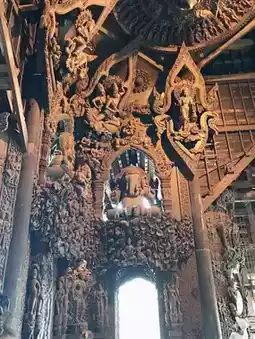 The Sanctuary of Truth in Pattaya is a unique wooden structure, intricately adorned with carvings. It vividly illustrates the principles of Eastern philosophy ✨