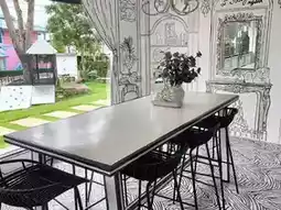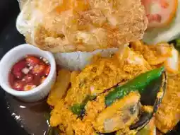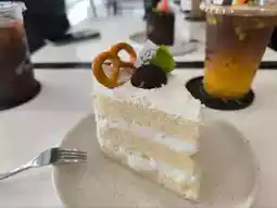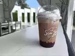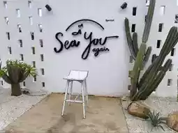 Atmosphere/Location - See You Again, Koh Larn is a newly opened cafe in the heart of Koh Larn. Decorated in a minimalist white style, the shop front offers numerous photo spots, including a beach hammock, white chairs, a picnic area, and a lawn. The shop is painted in black and white, with various decorative murals on the walls. The air-conditioned interior is cool and comfortable. The shop offers a selection of hot and cold drinks, cakes, and food. The drinks are well-balanced, and they have a wide selection of coffees. You can order them at a counter. I recommend the coconut cake, which is delicious. They also offer rice dishes like seafood curry fried rice, seafood basil rice, and seafood noodles. They also offer a variety of pizzas. On the side of the shop, there are square photo frames lined up on each level, creating a sense of dimension. There are approximately 9-10 tables, which can accommodate a large number of people.