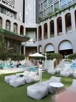 We have a newly opened hotel in Pattaya to recommend to everyone. It's called Milia Hotel Pattaya. This five-star hotel boasts excellent service and friendly staff. Upon arrival, we were greeted by a friendly receptionist. We checked in and went to our room. The room was beautiful. We booked an ocean view room. The bed was large and comfortable, and we had a great sea view. The room amenities were excellent. The pool is located on the ground floor, making it incredibly beautiful for photos. Don't miss this for content creation!
